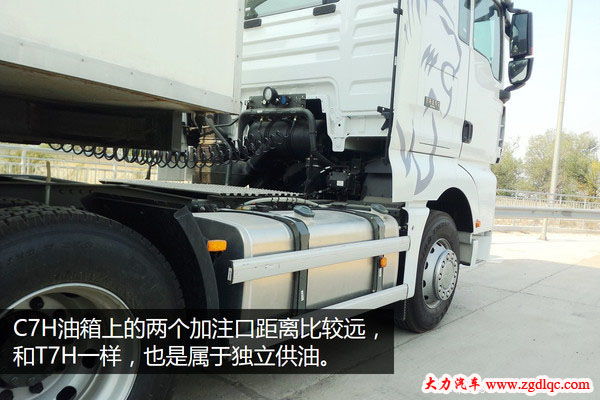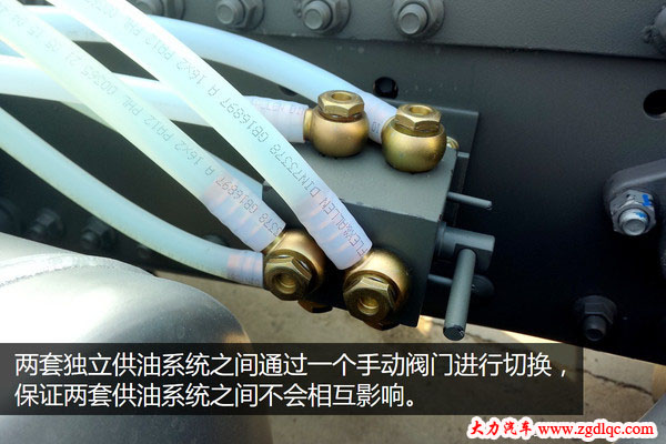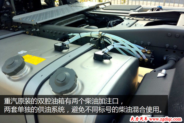 今日,大力汽車(chē)從中國(guó)重汽了解到,目前T7H和C7H都可以裝配雙腔油箱,通過(guò)一個(gè)簡(jiǎn)單的控制閥門(mén)就可以實(shí)現(xiàn)兩個(gè)油箱之間的任意轉(zhuǎn)換。