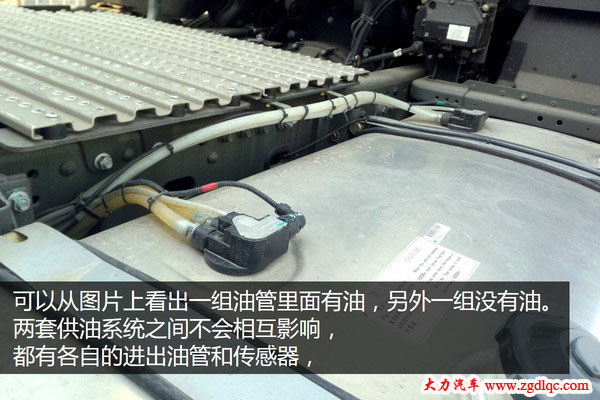 從照片上可以看出兩個(gè)油箱之間沒(méi)有之間的關(guān)聯(lián),分別有自己的出油管和進(jìn)油管,甚至還有單獨(dú)的傳感器等等,不過(guò)好像沒(méi)有燃油預(yù)熱功能。可以知道這兩個(gè)油箱的供油系統(tǒng)是單獨(dú)的。兩套單獨(dú)的供油系統(tǒng)不會(huì)相互影響,以免造成不同標(biāo)號(hào)的柴油混合。