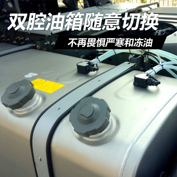 在一些高寒地區(qū)經(jīng)常出現(xiàn)柴油被凍、掛蠟的情況,使得很多車(chē)主不得不加裝一個(gè)副油箱,經(jīng)常是0號(hào)柴油和-35號(hào)柴油混用,但是由于技術(shù)、工藝等問(wèn)題造成加裝的油箱在外觀、實(shí)用性上比較差。而重汽原裝的雙腔油箱正好解決了這一問(wèn)題,獨(dú)立的供油系統(tǒng)可以主副油箱之間柴油不會(huì)混合在一起,同時(shí)通過(guò)手動(dòng)切換閥門(mén)可以供應(yīng)不同標(biāo)號(hào)的柴油,十分的方便。