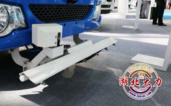 在此車的前部安裝有前清洗裝置,噴嘴噴射出的高壓水流能夠完成對(duì)路面的清洗任務(wù)。此外該裝置能夠上下轉(zhuǎn)動(dòng)12°、左右偏擺各18°,有效提高了清洗的效率,增加了作業(yè)寬度。