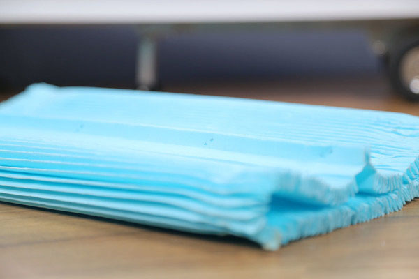 我們又用相同的辦法將內(nèi)部的安全芯進行了拆解,從實拍的圖片上可以看到,除了涂抹濾芯膠多得地方,其它部分經(jīng)過錘子的敲打已經(jīng)全部脫落下來,并且伴有許多粘合劑的碎末。安全芯濾紙的拼接處雖然沒有敞開,但卻是用幾個訂書釘連接的,不得不說糊弄的太草率了。