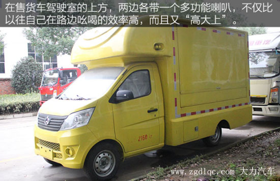 駕駛室上方還配備了多功能的喇叭,在售賣產(chǎn)品的時(shí)候我們只需要提前將其錄音,這樣它就可以幫我們做宣傳了。不像以往那樣,需要站在路邊大聲吆喝來引起路人注意。而且喇叭的音量可以調(diào)節(jié),其傳播的范圍要遠(yuǎn)遠(yuǎn)高于人的聲音,不僅提高了效率,而且給人的感覺又特別的“高大上”。