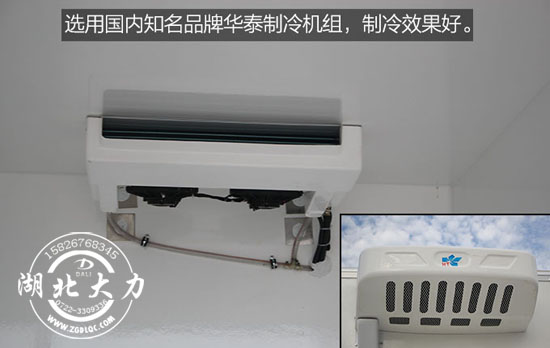 選用國內(nèi)知名品牌華泰C300冷藏機(jī)組,廂體內(nèi)最低溫度可達(dá)到零下5度。制冷機(jī)組冷藏效果好,降溫快,提高了送貨司機(jī)的工作效率。