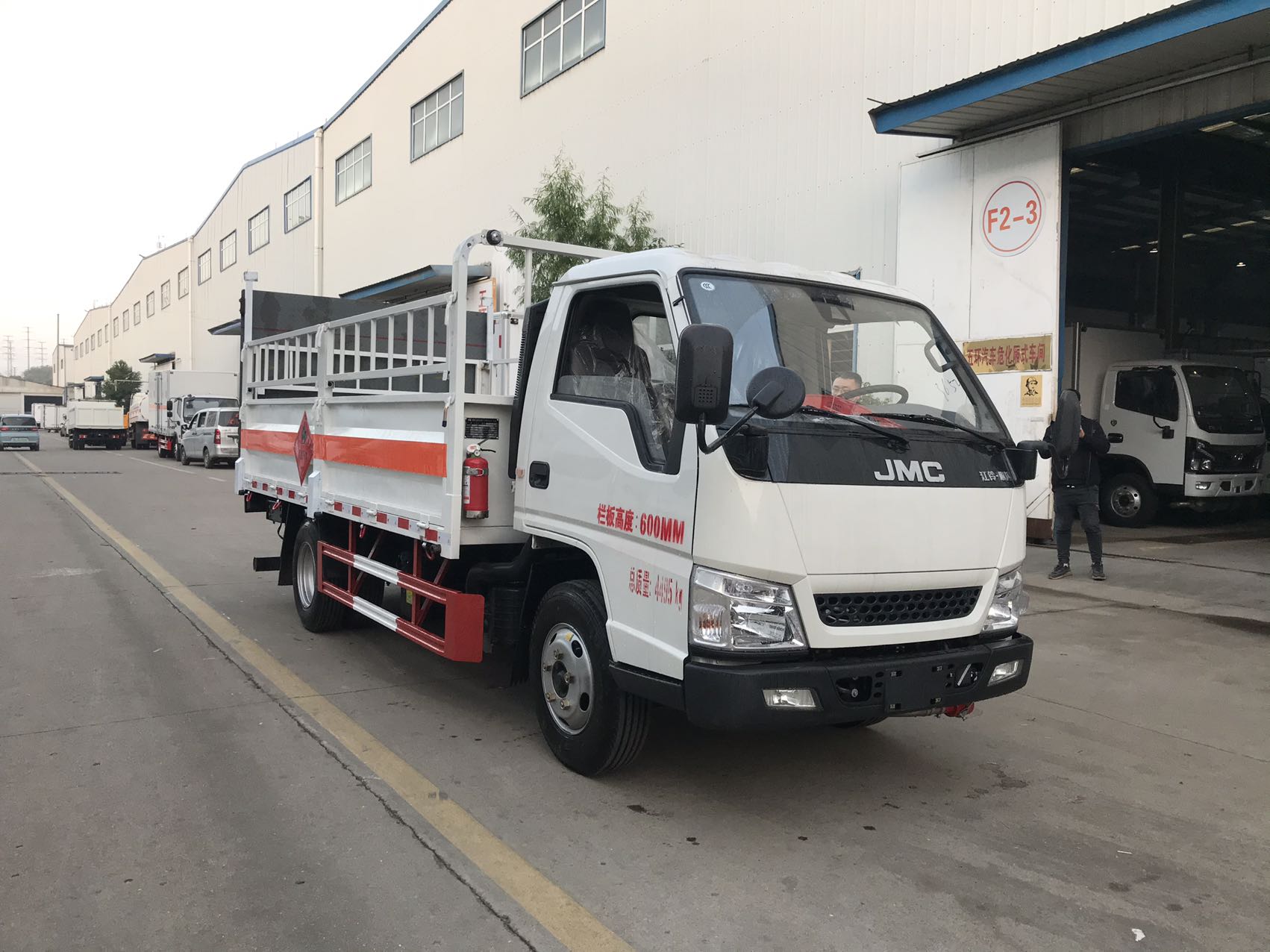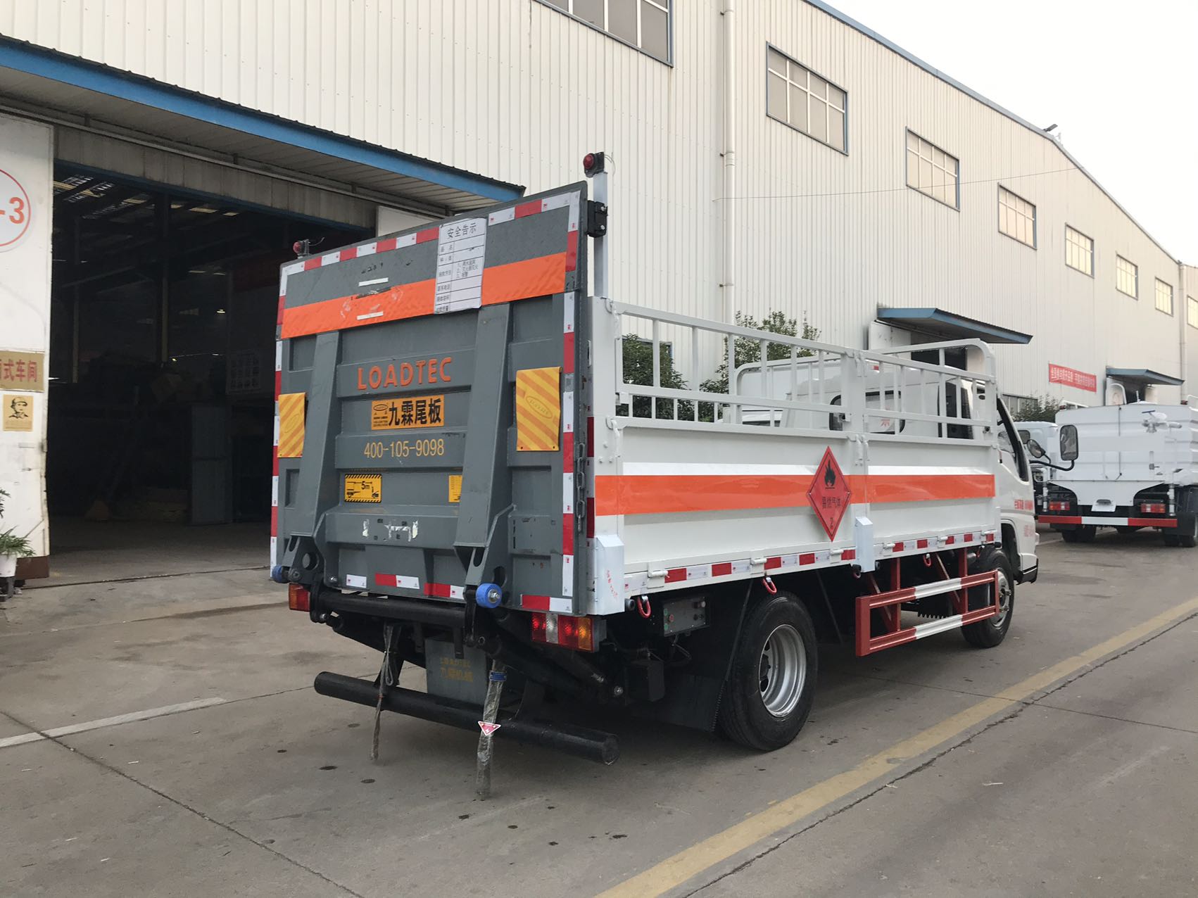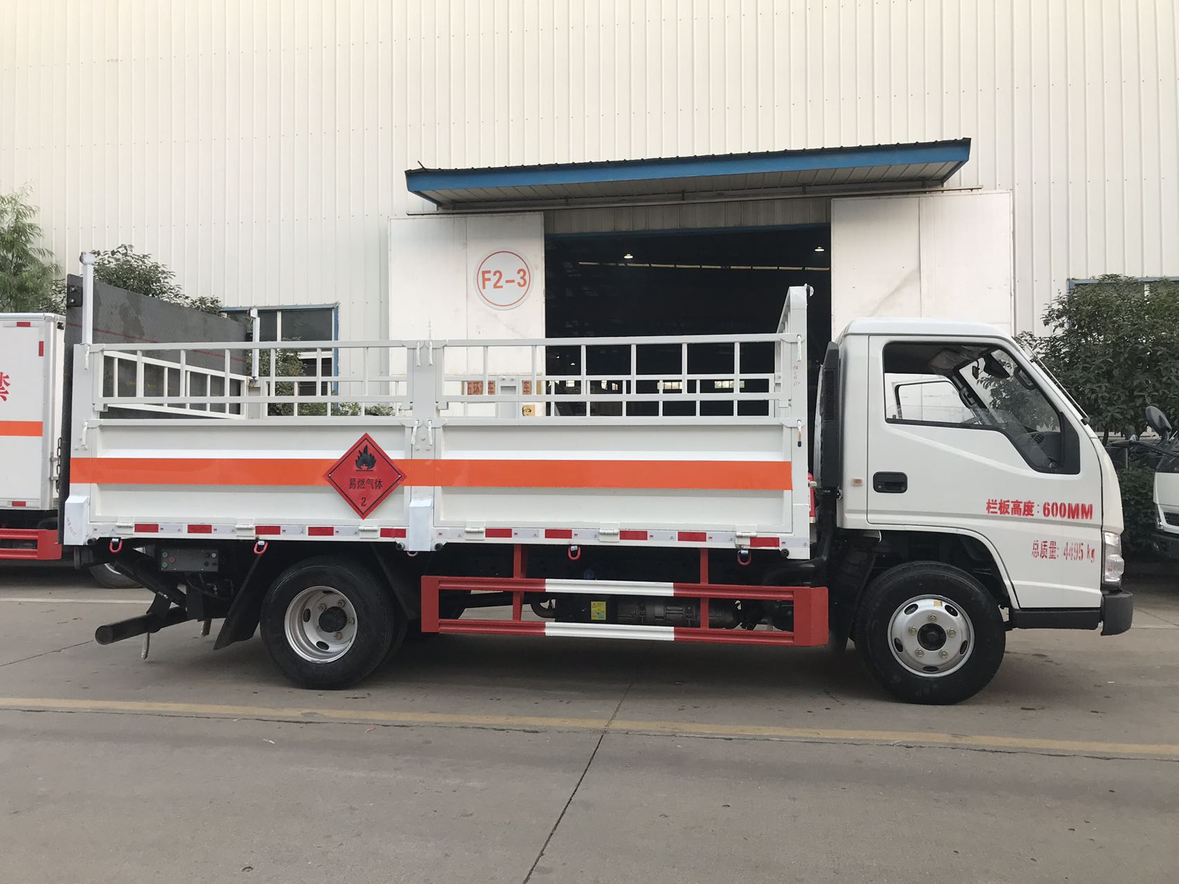嚴(yán)格按照公告尺寸制作,底板采用高強(qiáng)鋼,底板上鋪靜電膠皮,帶高欄,配備滅火器,三角頂燈,靜電拖帶等,嚴(yán)格按照國(guó)家危險(xiǎn)品法規(guī)進(jìn)行“易燃?xì)怏w”標(biāo)識(shí)粘貼等。