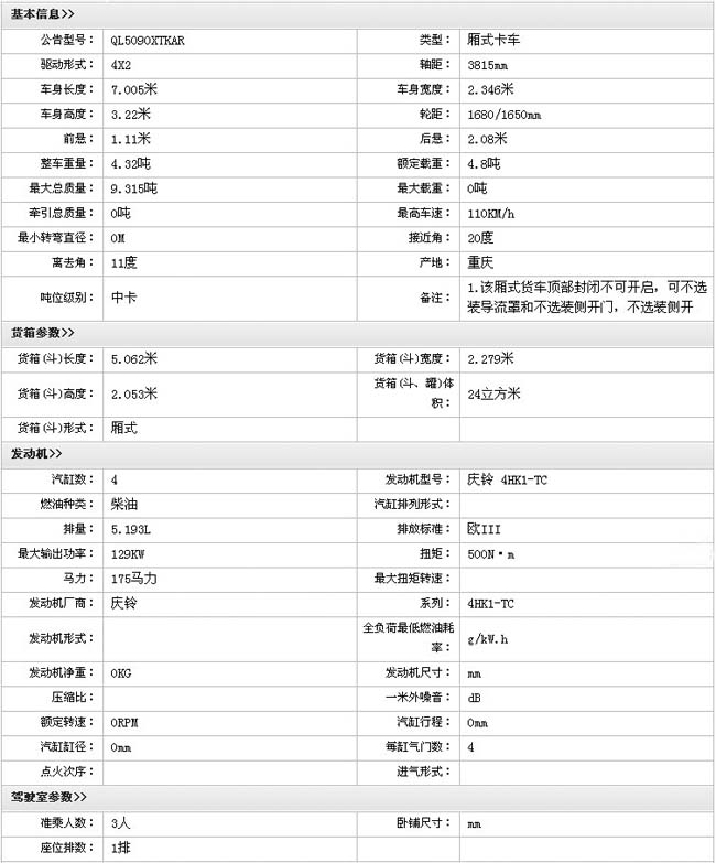 慶鈴中卡175馬力廂式載貨汽車