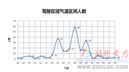 此圖為參與調(diào)查的卡友們所處在的駕駛環(huán)境的氣溫區(qū)間圖,調(diào)查顯示卡友們的駕駛環(huán)境基本在35—40攝氏度,最高氣溫為45攝氏度。該項(xiàng)調(diào)查證明大多數(shù)卡車司機(jī)的駕駛環(huán)境已經(jīng)超出了人體感受的舒適度。
