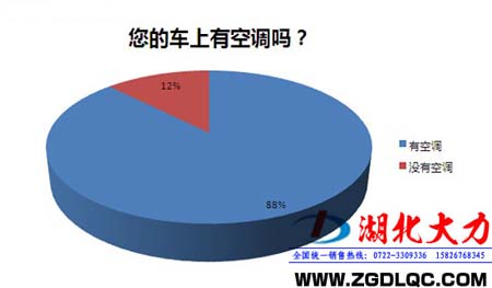 其中“您的車上有空調(diào)嗎?”這一項(xiàng)調(diào)查,最后調(diào)查結(jié)果為204人的車上有空調(diào),29人的車上沒(méi)有安裝空調(diào)。調(diào)查結(jié)果88%的卡車上均有空調(diào),沒(méi)有空調(diào)的卡車大多是老舊的卡車,或是小型的輕卡。