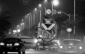 此類后射燈,白天不顯眼,有的安裝在半掛牽引車尾部后牌照位置,有的安裝在半掛車的車廂下部,還有的安裝在半掛車標桿前部或尾部。安裝時,有的車燈朝后,有的車燈朝上,因為其作用的不同,安裝的位置與照射方向也明顯不同。這類車燈在該車出廠時沒有,百分百系私自安裝。安裝成本,據說好的二、三十元一只,差一點的只有十幾元,價格便宜,安裝也非常方便,與車上的電器線路串聯起來即可。串聯時,可與車輛后位燈、大小燈相串,也可與倒車燈相串,具體要看其所起作用,再選擇所串線路位置。如安裝在標桿上、車廂車架上、主車倒車燈位置等。